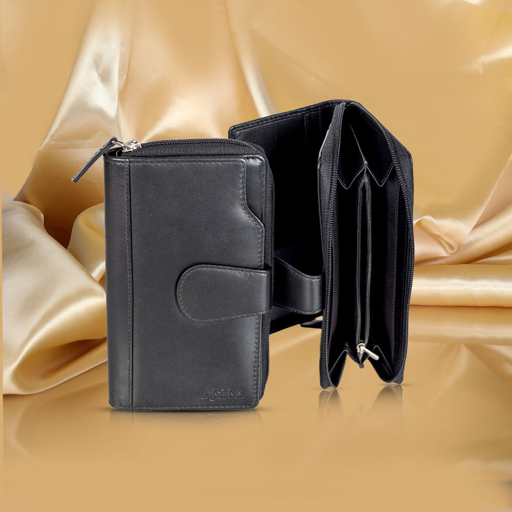 Introducing our stylish black leather wallet for women, designed to combine functionality and fashion. Crafted with premium quality leather, this wallet offers durability and a luxurious feel. Its sleek design makes it perfect for everyday use or special occasions. Stay organized and elevate your accessory game with this versatile black leather wallet.