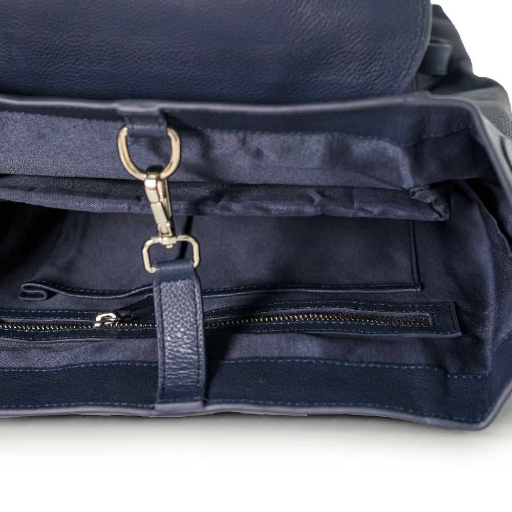 Made with high-quality genuine leather, this minimalist design features a smooth finish, structured silhouette, and a front flap closure for added elegance. The spacious main compartment and front pocket offer ample room for your daily essentials, whether you're heading to the office, university, or a casual outing.
