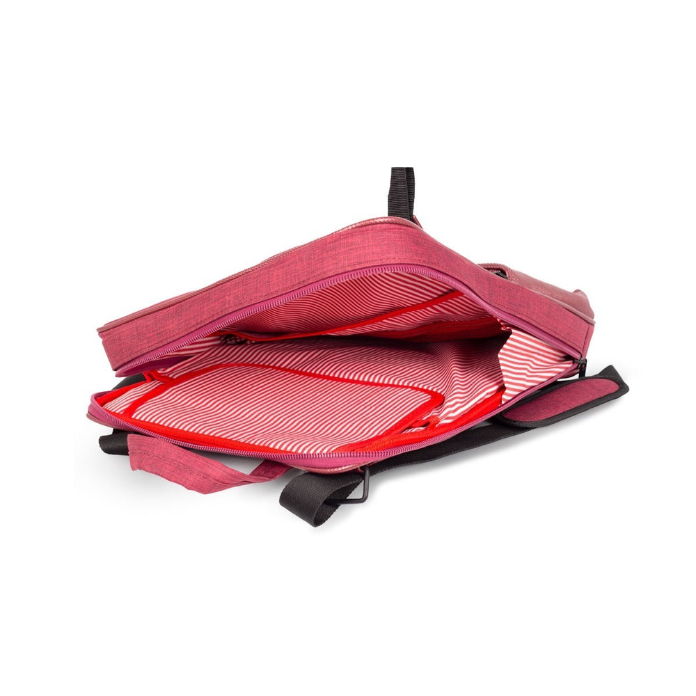 Introducing the Premium Laptop Bag! This bag features a satin-lined dual-chamber interior for maximum protection and style. The large front pocket is perfect for holding your personal items, while the keyhole phone pocket makes it easy to access your smart devices. The water-resistant and adjustable shoulder strap ensures that you can carry your laptop around with ease.